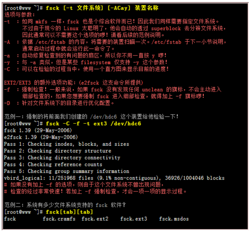 在此下面帖出一个鸟哥的fsck的命令说明。