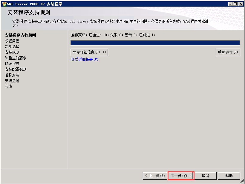 4.1.0安装支持规则的检测(检测当前系统环境能否支持SQL2008 R2)