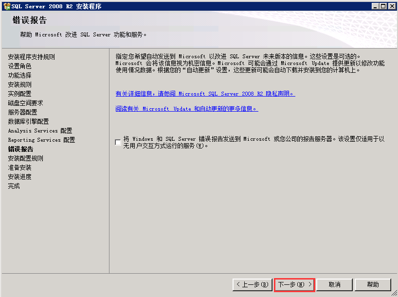 4.2.2.错误报告,默认即可.其指定出错时要不要发送错误报告给微软.
