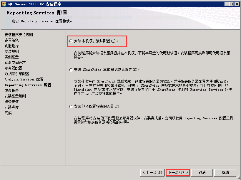 4.2.1.Reporting Services 配置,默认即可
