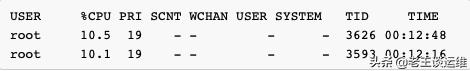 [root@localhost ~]# ps -mp 2633 -o THREAD,tid,time | sort -rn