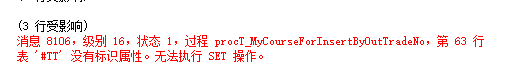 SQL Server 存储过程遇到“表 ''#TT'' 没有标识属性无法执行 SET 操作”错误