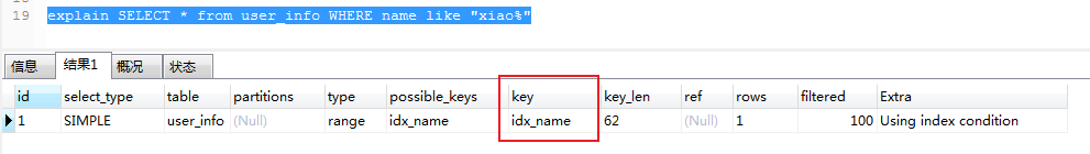使用左模糊匹配以及左右模糊匹配都会导致索引失效,但是使用右模糊匹配,还是可以走索引查询的。