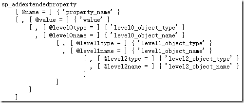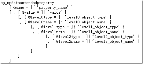 EXEC sys.sp_updateextendedproperty @name = N’MS_Description’ –要添加的属性名称