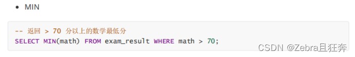 - 注意最后面都是可以加上where,order by这些语句的,这些聚合函数会根据这些语句的结果集来进行查询