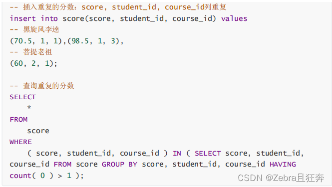 3.分组操作中,查询允许的是分组字段,聚合函数,其他非分组字段需要保证分组后没有多行(如学生id分组,查询字段可以有学生姓名,因为学生id分组以后,只有一行)