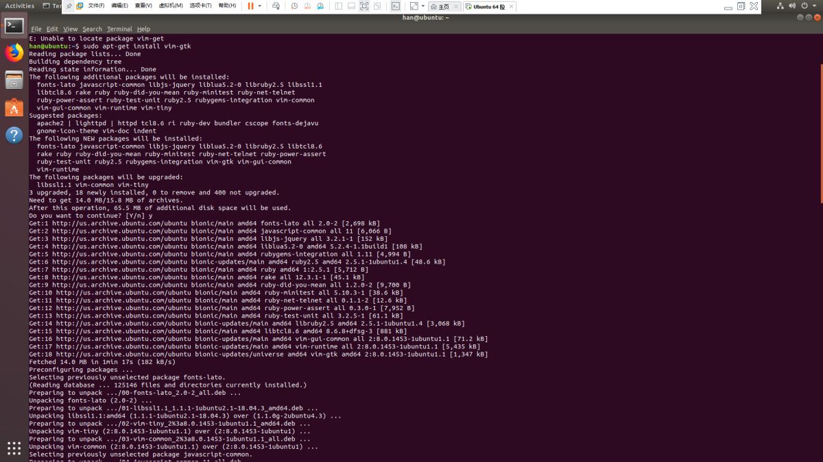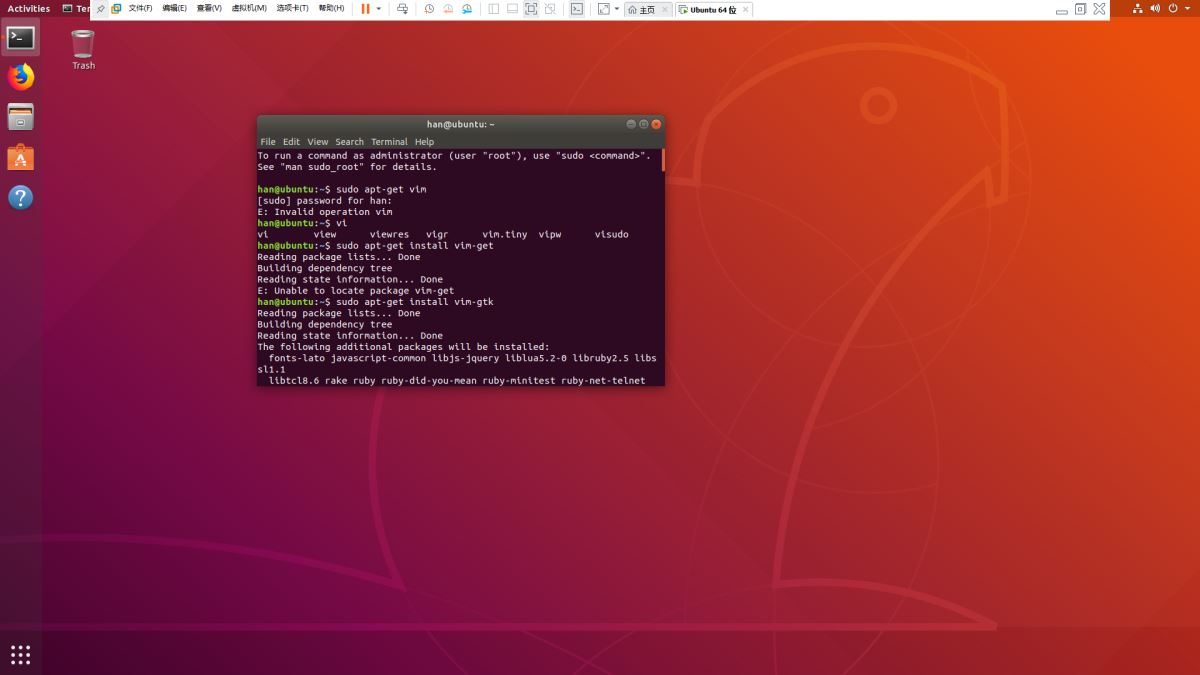 Linux (Ubuntu 18.04) 下安装vim编辑器的方法