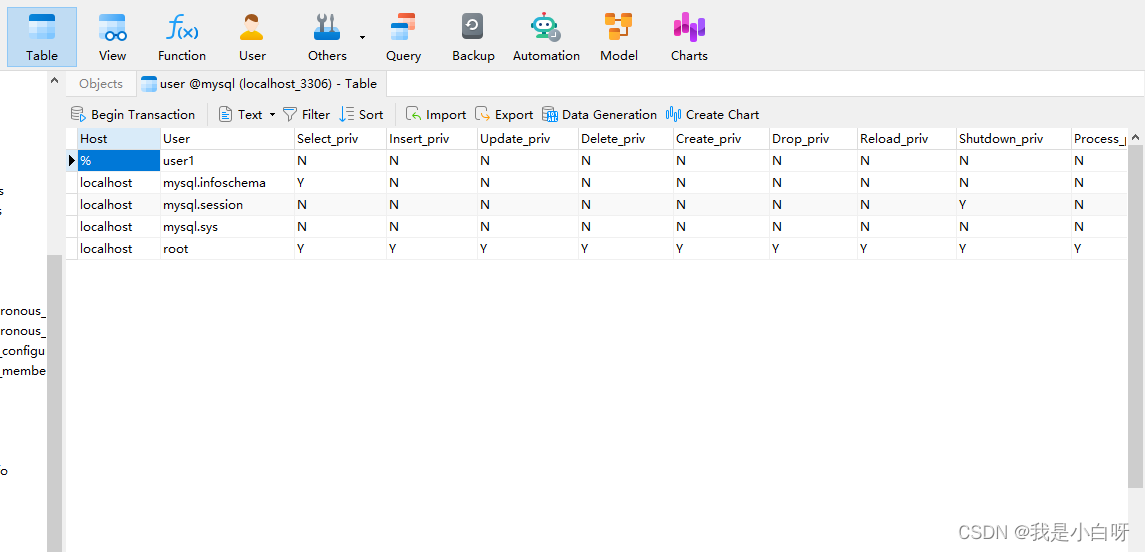 MySQL 的权限信息主要存储在以下几张表中, 当用户连接数据库时, MySQL 会根据这些表对用户进行权限验证.