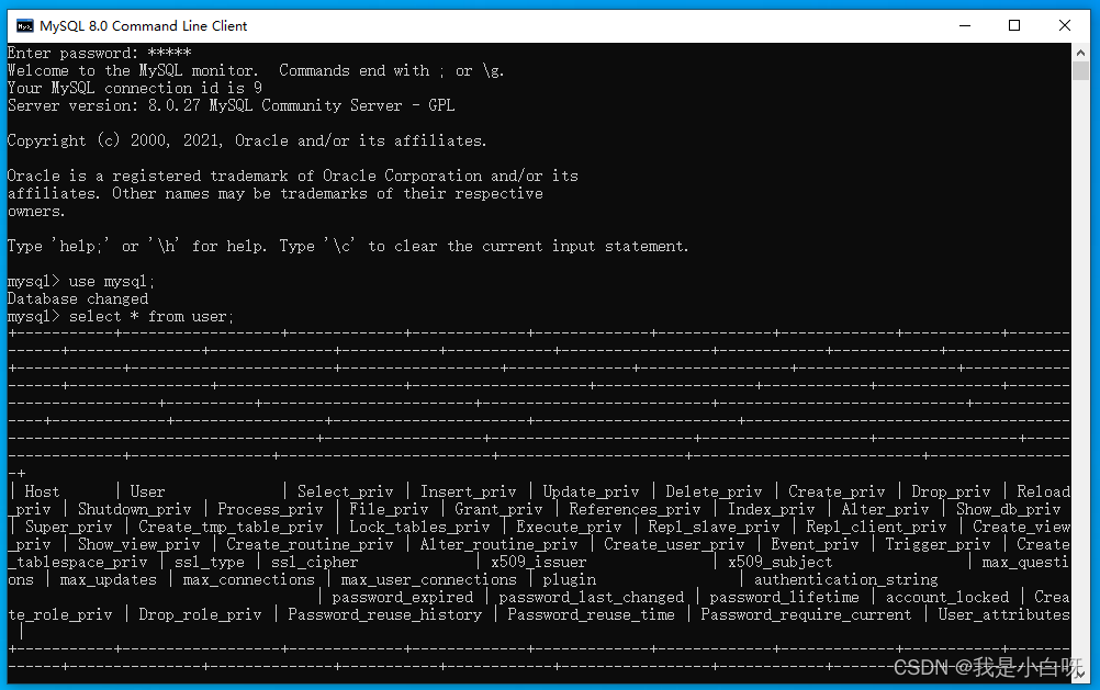 在 MySQL 中, 使用 CREATE USER 来创建用户, 用户创建后没有任何权限.