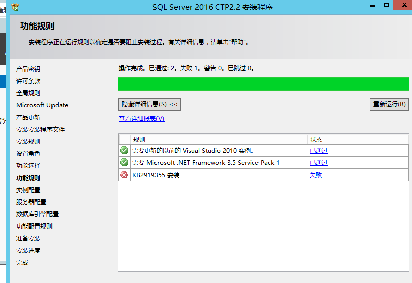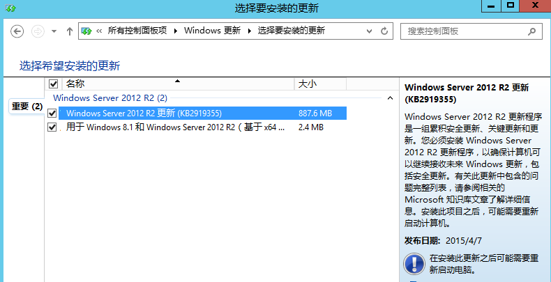 如果你不勾选PolyBase,那么只需要下载安装KB2919355就可以了