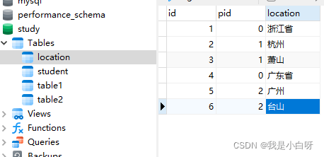 自连接 (Self Join) 是一种特殊的表连接. 自连接指相互连接的表在物理上同为一张表, 但是逻辑上是多张表. 自连接通常用于表中的数据有层次结构, 如区域表, 菜单表, 商品分类表等.
