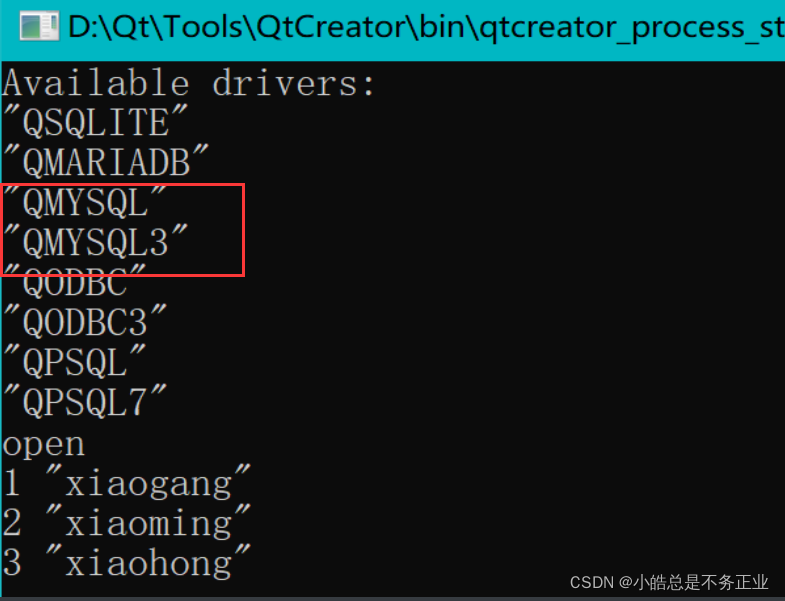 这时候Mysql的驱动装好了,用代码测试QT现在支持的SQL驱动