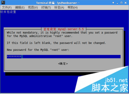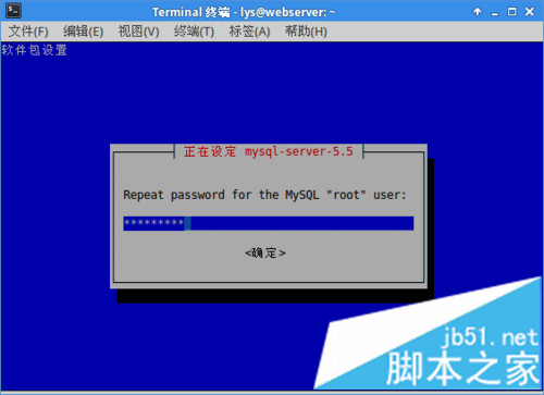 打开”终端窗口”,输入”sudo apt-get install mysql-server mysql-client”–>回车–>输入”y”–>回车–>在”软件包设置对话框”中输入mysql中”root”用户的密码–>回车–>再输一次密码–>回车,安装完成。