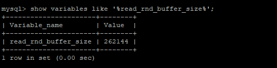 配置项:read_rnd_buffer_size 用来配置上述描述的键值缓冲区大小,默认为256K;当发生溢出时,执行器只对已经缓存的数据进行排序。