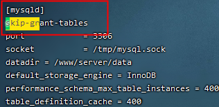 通过在配置文件/etc/my.cnf下的[mysqld]选项下添加skip-grant-tables,实现登录mysql不需要密码。