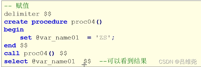 set var_naem01 = ‘zhangsan’; — 给变量赋值