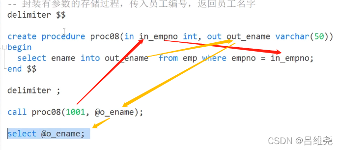 select sal into var_sal from emp where ename=in_eanme; — 将值赋给局部变量
