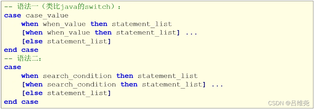 语法二:直接写case 当when后面的条件成立则执行then后面的语句,如果都不成立,则执行else