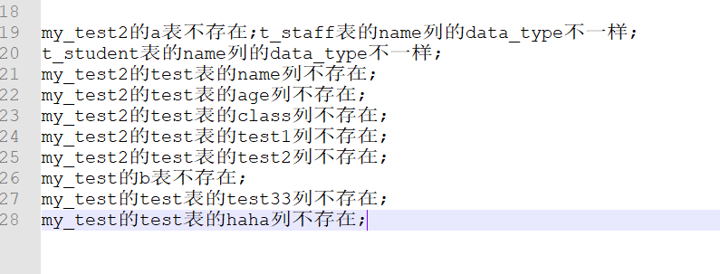 SET this_info=CONCAT(this_info, table_name, ‘表的’, column_name, ‘列的’, column_info, ‘不一样;\n’);