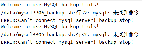 1、mysql3306_backup.log日志中出现"mysql: 未找到命令"或“mysqldumpl: 未找到命令”