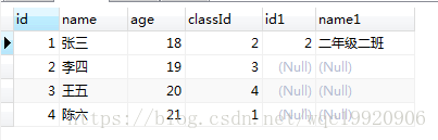 运行sql : select * from student s left join class c on s.classId=c.id order by s.id
