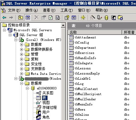 1)打开开始菜单->程序->Microsoft SQL Server->企业管理器,依次展开Microsoft SQL Servers->SQL Server 组->(local)->数据库,右键点击数据库名,选择所有任务,再点击附加数据库。