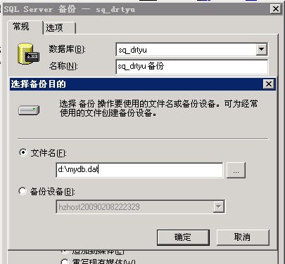 2)在常规选项卡上点击添加,再输入备份文件名,点击确定即可。