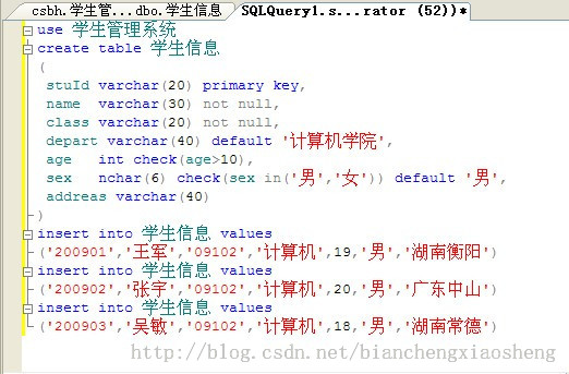 启动“Microsoft SQL Server2000”,打开“企业管理器”在“数据库”中建立名为“学生管理系统”的数据库,并在其下制作名为“学生信息”的数据表,如图1示。