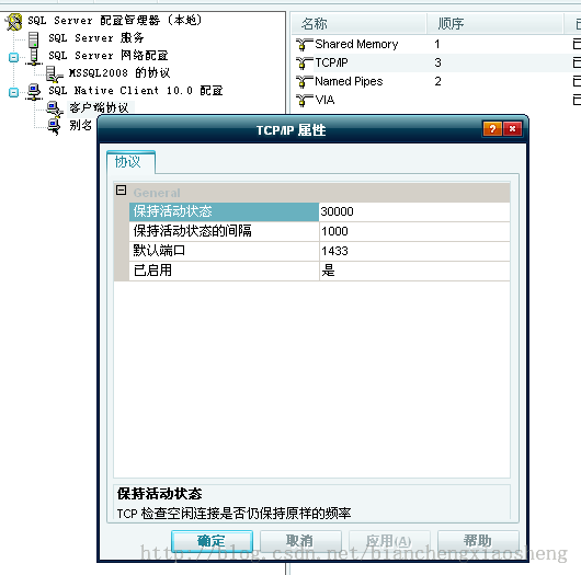 同样的方法,开启客户端的TCP/IP,端口也为1443,如图: