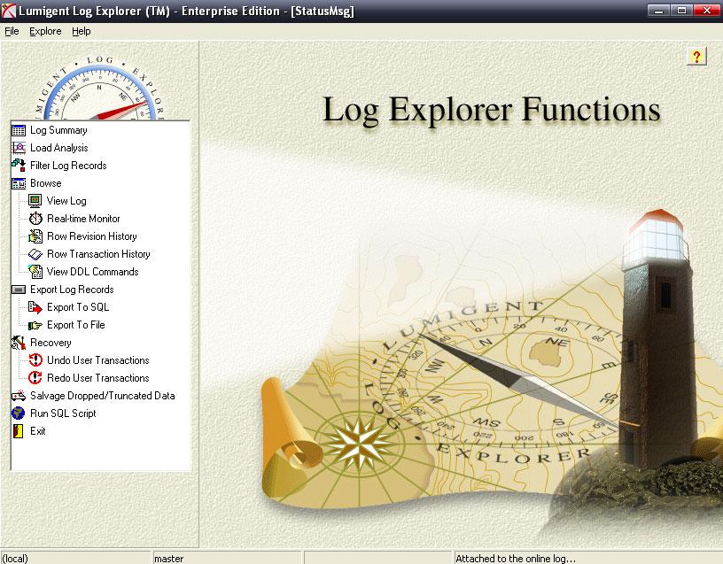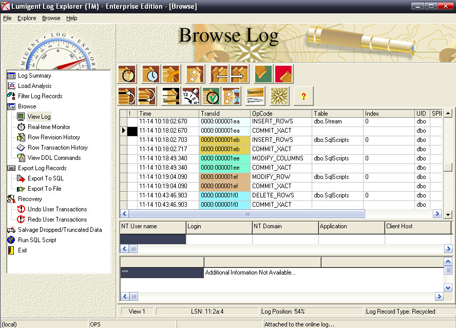 可以看到左边菜单中有很多功能,我们要恢复数据,首先要查看日志,找出我们误操作的那些日志记录,点Browse下的View Log: