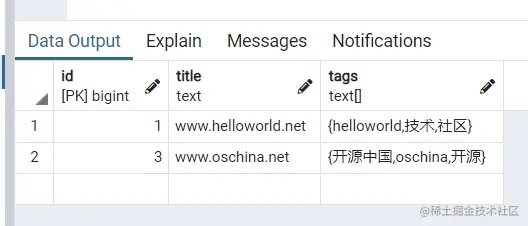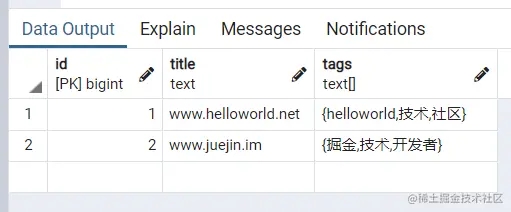 helloworld开发者社区在改版的过程中,数据库虽然换成了 PostgreSQL ,但是博客的标签这块需求,并没有用这种方式
