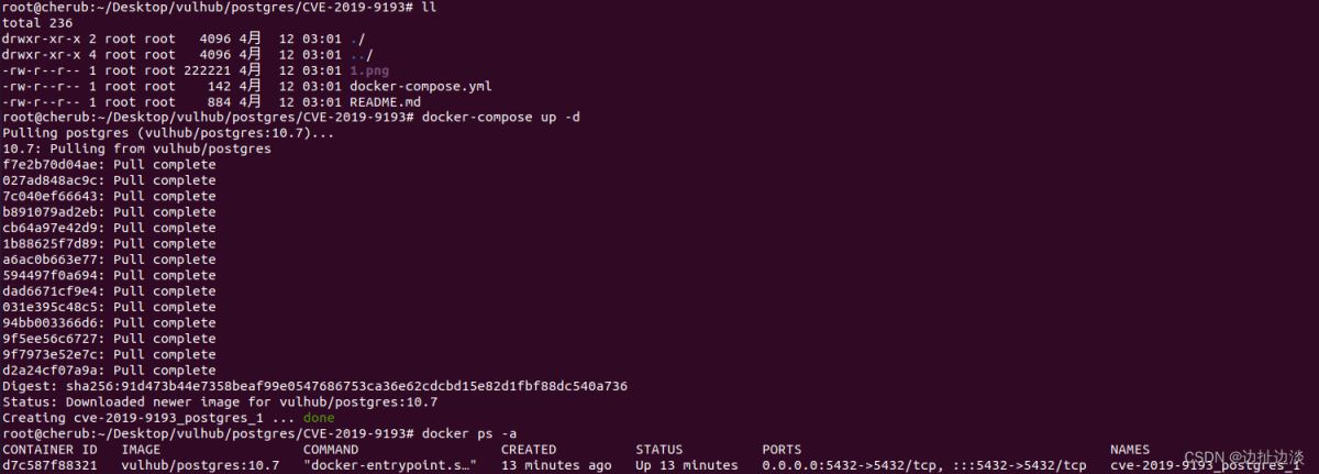 github上的vulhub环境。PostgreSQL版本为10.7。