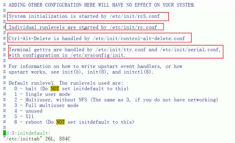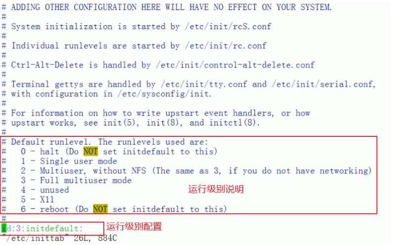 所以Red Hat 6中,/etc/inittab配置文件的唯一作用就是配置Linux系统默认运行级别。id:3:initdefault::中间的数字3的位置,就是配置Linux系统默认运行级别,写几就是对应的级别。