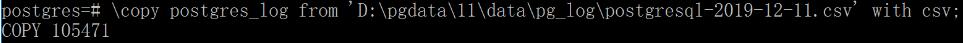 \copy postgres_log from ‘<CSV日志路径>’ with csv;
