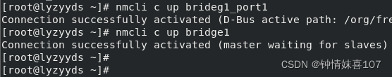 [root@lyzyyds ~]# nmcli c up bridge1 桥接启动