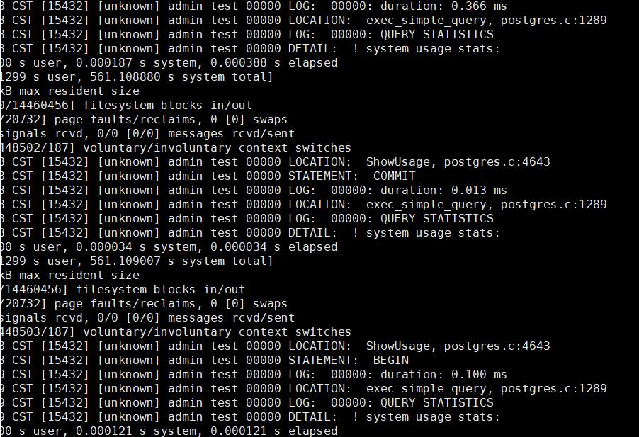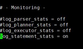罪魁祸首就是下面图中的log_statement_stats 这个设置,将他打开后,系统会根据每个SQL 产生一个语句的性能方面的统计信息,可以想象如果将他打开可以看到每条语句在执行中的状态, duration 等等信息,但这样就会产生大量的日志,经过统计次系统1秒产生1MB的日志,(此系统每秒插入上百条数据),在关闭后,问题解决。