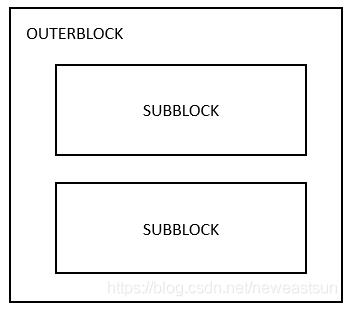 PL/pgSQL可以一个块在另一个块的主体中。一个块嵌入在另一个块中称为子块,包含子块的块称为外部块。