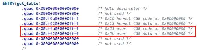 Linux下没有找到可以直接用什么命令或者工具查看GDT的方式,于是去源代码中寻找答案: