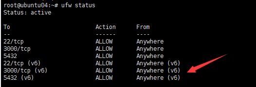 查看防火墙状态,查看5432端口是否增加成功: