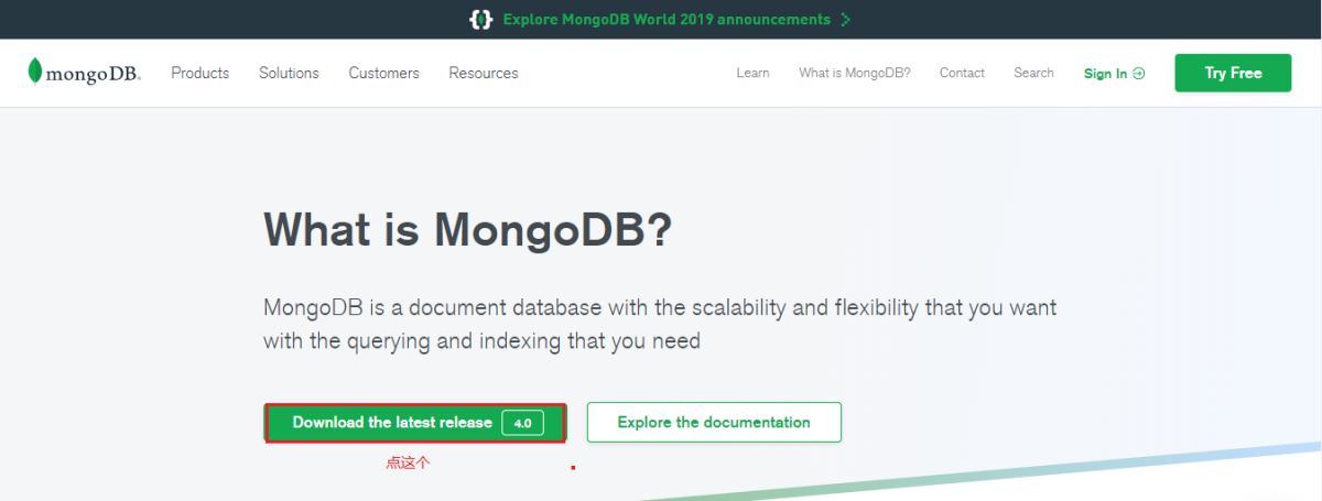 1、进入MongoDB官网,Products -> 选择SOFTWARE下的MongoDB Server