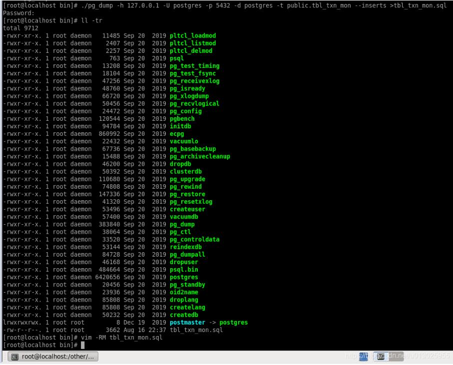 ./pgdump -h 127.0.0.1 -U postgres -p 5432 -d postgres -t public.tbltxnmon –inserts >tbltxn_mon.sql
