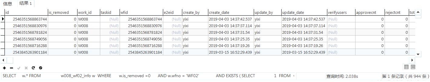 下面的操作中对应数据库表w008_execrise_info(8000数据量), w008_wf02_info(4000数据量)