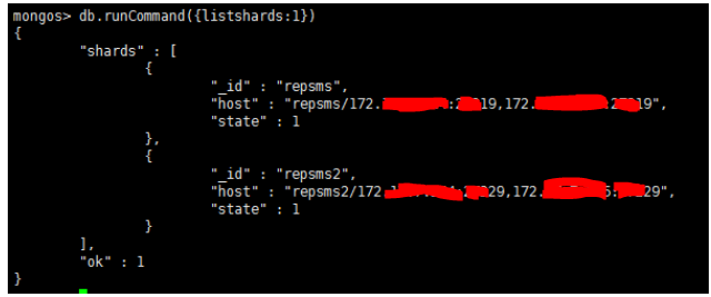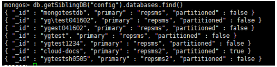 6.5.3 也可将命令切换到config数据库下,执行db.chunks.find()查看。可以输入制定参数,例如,查看分片repsms2,集合cloud-docs.PushMessageRecord的块情况(cloud-docs为数据库名称)
