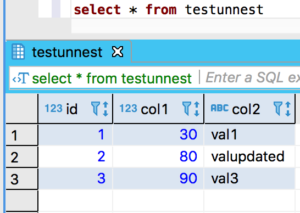 “INSERT INTO testunnest(id, col1, col2) ” +
