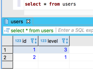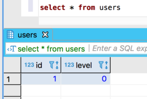 INSERT INTO users (id, level) VALUES (1, 0)