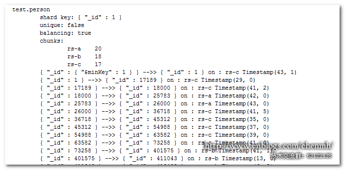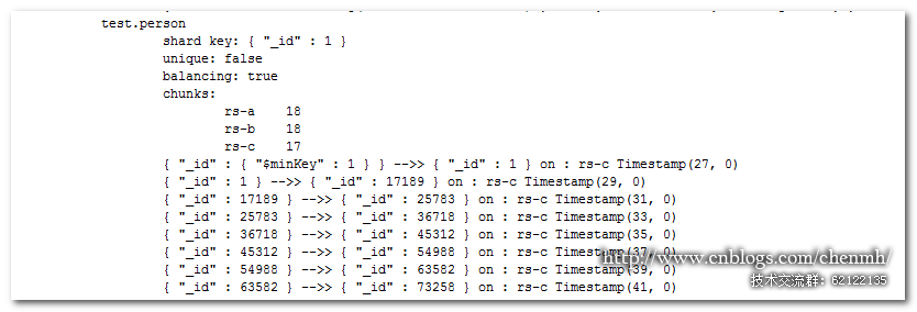 创建分片时,只在主分片上创建了一个块{ "username" : { "$minKey" : 1 } } -->> { "username" : { "$maxKey" : 1 } } on : rs-a Timestamp(1, 0) 。