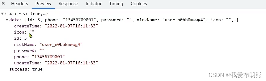 如下图所示,服务器返回的信息有点多,我们为了保护用户的信息,我们需要隐藏部分的内容