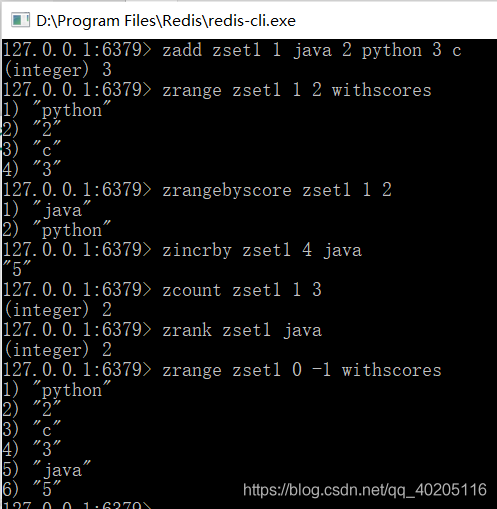 zrange <key> <start> <stop> [WITHSCORES] 返回有序集 key 中,下标在<start> <stop>之间的元素,带WITHSCORES,可以让分数一起和值返回到结果集。