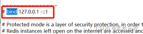 2、注释掉绑定ip ,绑定ip的话,使得除了本机(服务器)以外的主机无法访问redis数据库